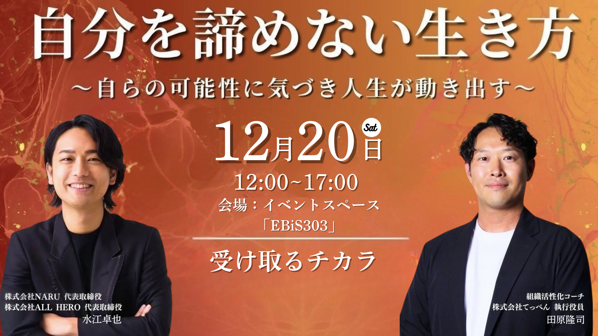 • 水江卓也氏 質問会 参加権(講演前開催) • 田原隆司「本気の朝礼」 参加権(講演前開催) • 懇親会 参加権(別途料金が必要です) • 翌日ランチ会 参加権(講師2人と共に/料金込み) • 田原隆司のコーチング(1時間) ※通常3万円相当 |